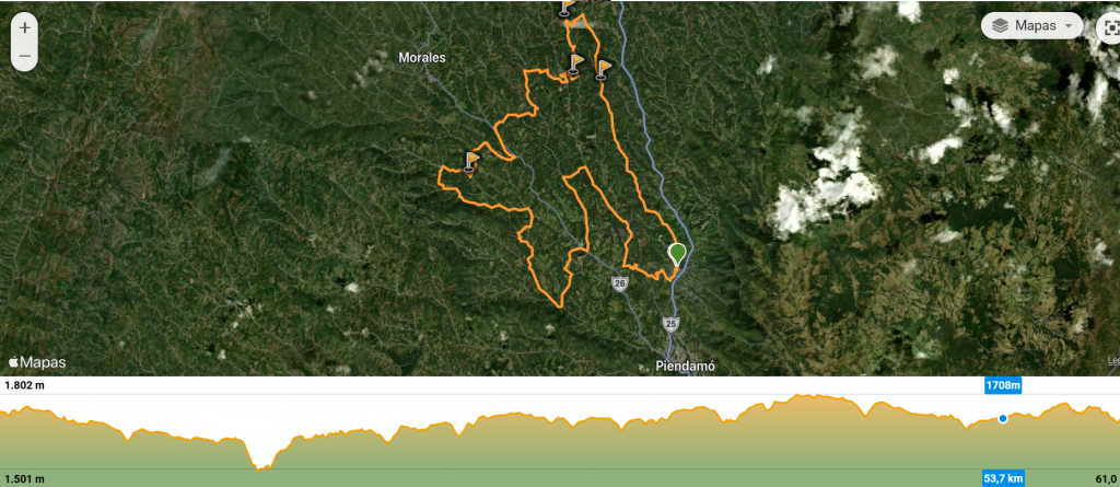 Das „Ruta de Cafe“ verläuft nördlich der Kleinstadt Piendamó in den Hügeln oberhalb des Cauca-Flusses. Sie erstreckt sich über eine Länge von 61km zwischen 1500m und 1800m in der gemäßigten Klimazone, in der Kaffee angebaut wird. Sie ist technisch schwierig, aber sie bietet unvergeßlich Eindrücke und ist eine sportliche Herausforderung. ( https://es.wikiloc.com/rutas-mountain-bike/ruta-del-cafe-2018-30049276 )